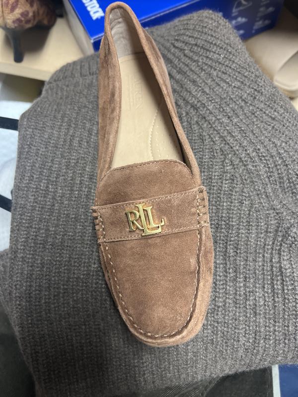 These RL loafers are so nice looking. Love the navy suede. They run a little bit narrow across the vamp. My usual size is 7M, which these are.