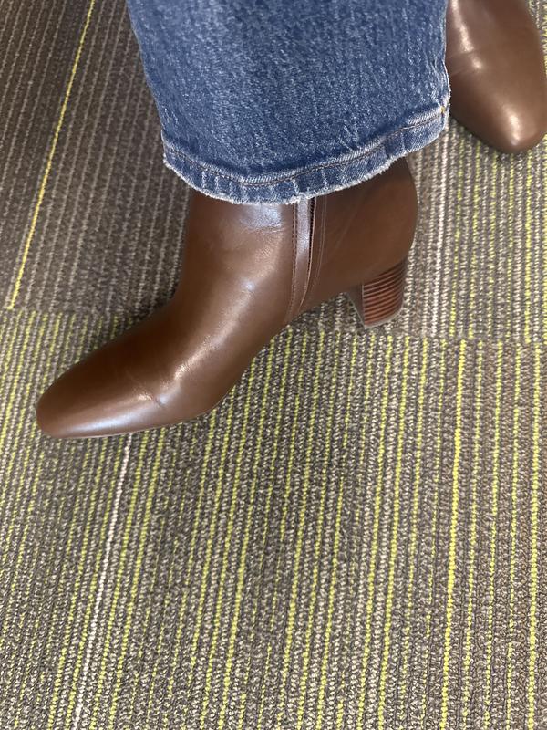These black boots are gorgeous and size 7 1/2 was true to size. The Ralph Lauren quality is evident. These could be dressed up with a dress or down with jean, very versatile. My only complaint is that my pair were clearly a return and shipped to me unzipped with no packing material in the boots or around the boots resulting in scratches all over them. Buy in store if possible.