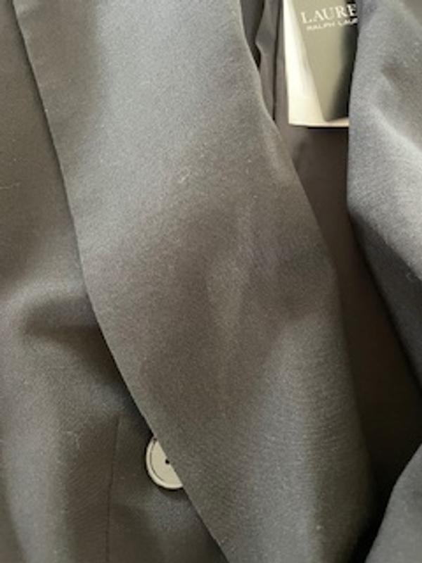 This is an absolutely beautiful and luxurious blazer. The fabric is friendly but obviously wool. The lines of the garment are so slenderizing. The buttons are high quality. It comes with a sturdy garment cover to keep it nice in your closet. I have seen news commentators on tv wearing this same blazer. At 5’1 and 150 lbs the 14 petite fits well with room to move. I highly recommend this garment.