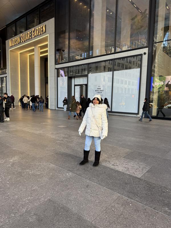 I love this coat and the fact that the faux fur in monochromatic. Fits nicely. I did get the next size up in case I wear certain sweaters I own that will coordinate nicely.