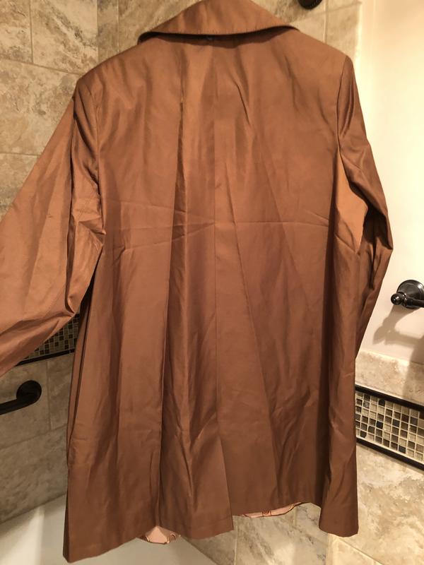 I love this rain coat. The fit and quality of the coat is exactly what I wanted. The color is a beautiful green. Even the lining is beautiful.