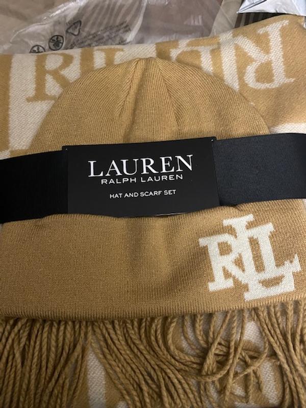 While this set is absolutely gorg, beware that the pictorial description is inaccurate. The only reason I am giving 4 stars is because the hat is not cream as shown and does not have the light gray trim. It is all camel colored. Aside from that, I actually love that the hat and scarf are the same color. The set is super soft and very classic Ralph Lauren. The jacquard monogram logo on each piece is extremely trendy...