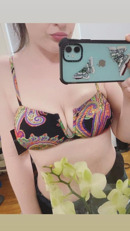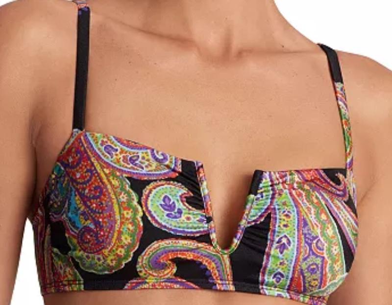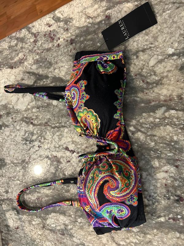 Split with a U-wire, this polished paisley bikini top partners perfectly with the ultra-high-waist bikini bottoms from Lauren Ralph Lauren.