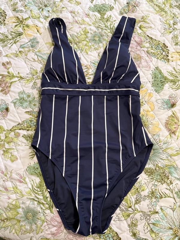 Villa Stripe one piece bathing suit is absolutely gorgeous. It looks even prettier in real life than photo and the quality is superior. The material is nice and seems to be comfortable but the sizing is off. I am 5’6 and 138 lbs and I typically buy size 4 one piece bathing suits but this one is like XXS. Go at least two sizes up than your regular size.