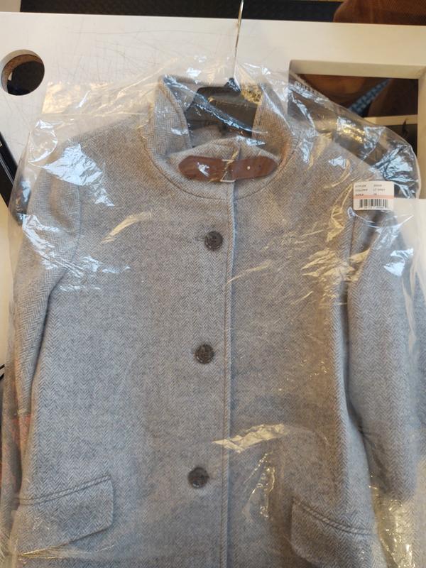 Love the material of this wool blend, belt-buckle coat and the overall quality. I had ordered the next smaller size, but had to return it because it did not fit. Macy's return experience was very smooth. I still wanted the coat, but my original color choice of navy was not available. I ordered the herringbone gray and really like it. I gave this review four stars instead of five for a couple of reasons. First, I thought there were two side pockets, but only one is a true pocket. The left one is a "dummy," there only for looks! Why did the manufacturer do this? Also, when the buckle at the top is closed, it is too tight for my neck. The collar does not sit up as straight as it should even when buckled. But it is a good-quality, lightweight "winter" (really, Fall) coat and I will keep it. It looks attractive on.