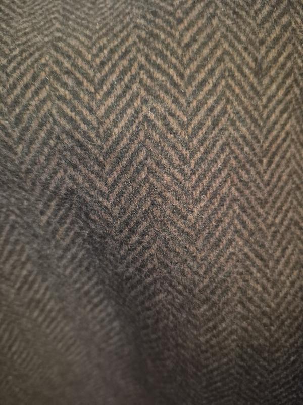 Caution - while it is a herringbone pattern, it is dark brown and black...not as pictured with loden green. Will return as it doesn't remotely look like the picture.