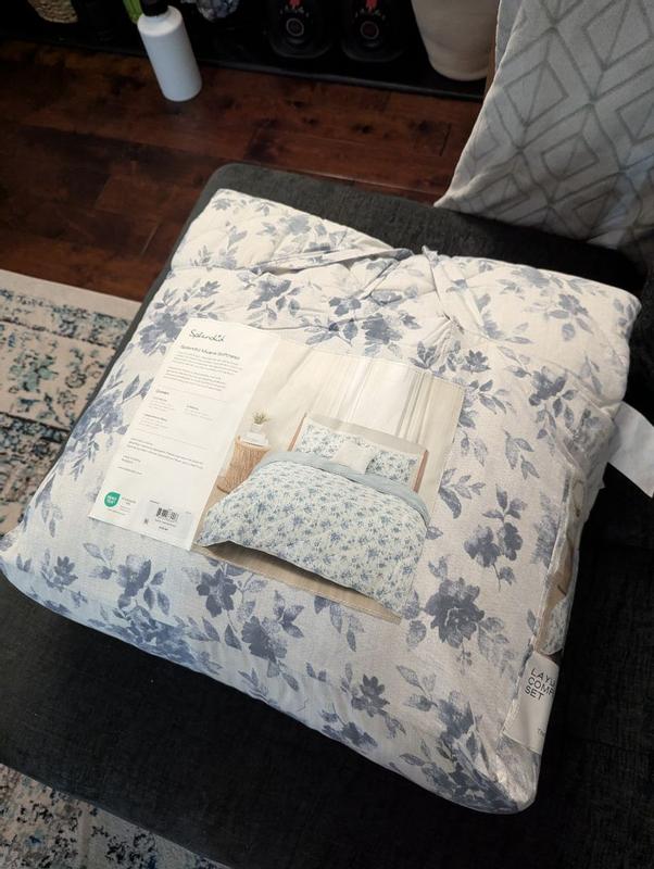 Super cute four-piece bedding set. I really like the blue florals on the white background. The material is super soft and comfy. It is perfect for a guest bedroom and the queen size works well fit great. I like how it comes with a stylish pillow as well. You don't have to go shopping for it separately. We'll see how long it lasts but perfect for what we needed
