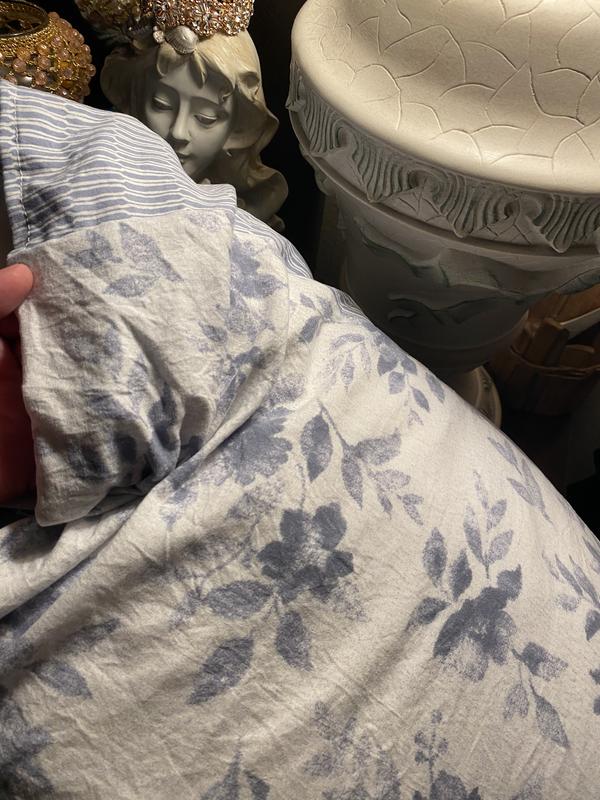 Super cute four-piece bedding set. I really like the blue florals on the white background. The material is super soft and comfy. It is perfect for a guest bedroom and the queen size works well fit great. I like how it comes with a stylish pillow as well. You don't have to go shopping for it separately. We'll see how long it lasts but perfect for what we needed