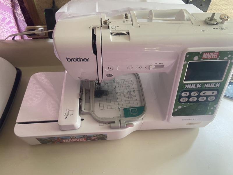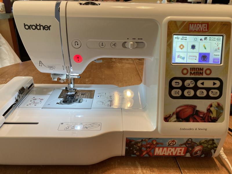 I am very crafty, but definitely a novice when it comes to sewing, so I was super excited to try out the Brother LB5000M. It being a Marvel edition was just icing on the cake since my son and husband are both huge fans. First of all, out of the box, this machine is a beauty. I mean I could have it sitting on my craft table and just admire it! It comes with everything you need to get started, including some nice Marvel designs. The manual is easy to follow and the touch screen makes figuring everything out very easy. It is very quiet and completely automatic which was a huge change from my previous 15-year old sewing machine. In spite of the large learning curve, I found it easy to use and I was able to figure most of it out rather quickly. I am excited to continue experimenting with it and trying more complex embroidery patterns!