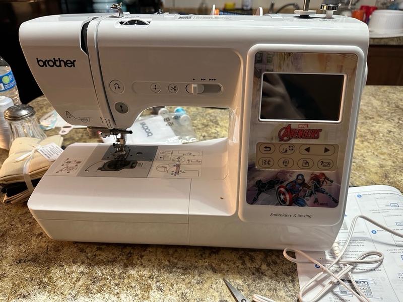 I love everything about this Brother machine. It’s the best of both worlds it’s combination of sewing machine and simple embroidery are everything I was looking for! I have the Marvel Edition and I can’t wait to go shop for some more color yarn to test out the included downloads. I also love that it’s so simple to wirelessly download any design to the machine. I have so many other small designs I can’t want to test out!
