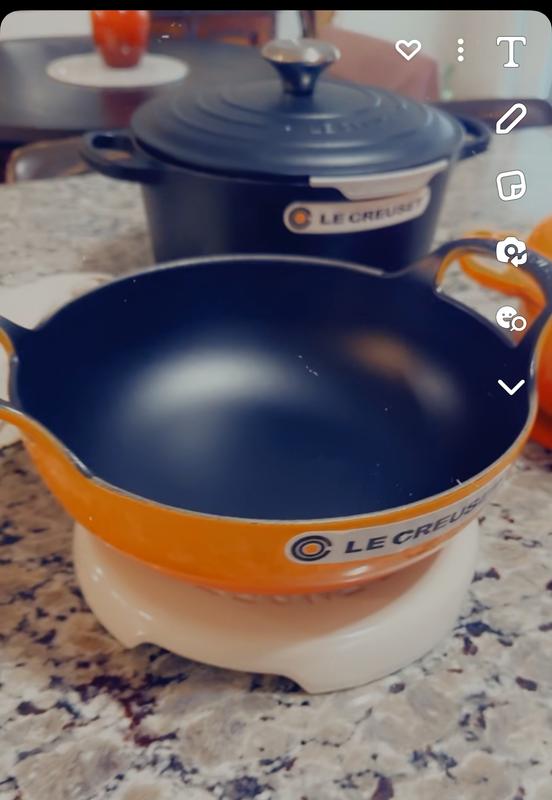 First of all, please get the name right, it's a Kadhai (wok) and not a Balti (bucket). I loved the shape and look so had to get one. It's a little smaller than I expected. But I've used other Le Creuset pans including their sauteuse which has a lid. Not sure how the non stick the enamel is and how will it be with usage.