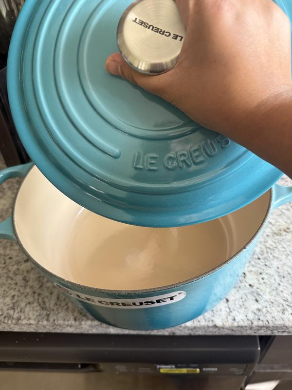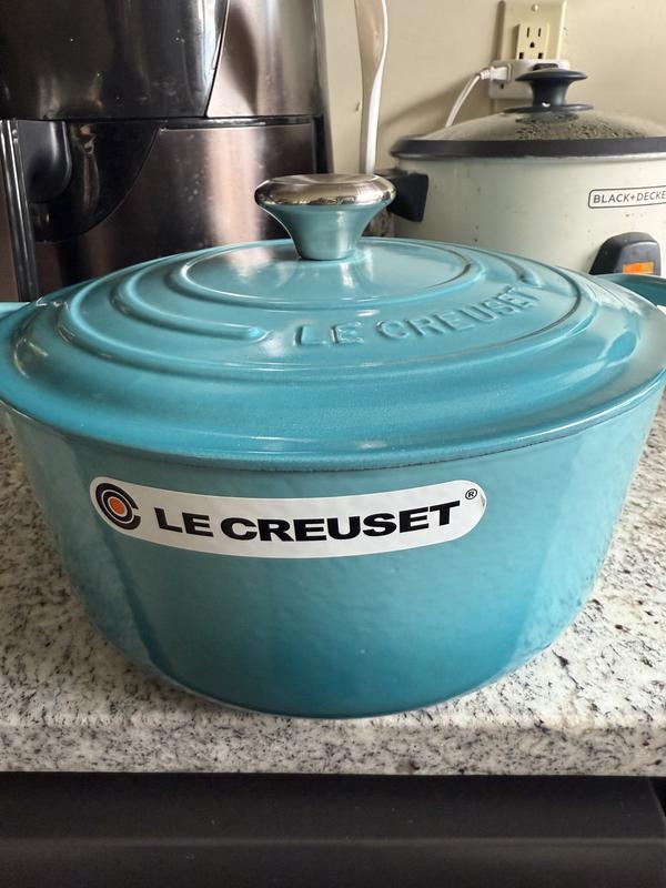 What can I say other than if you’re familiar with the name the review will be easy. Wonderful piece of cookware, have the same piece at another home. Just the best cookware, wish I would have started buying Le Creuset years ago since I’ve been seriously cooking for decades! The love the color, it’s aqua, and the color is graduated from the top down. So easy to clean no matter the amount of food particles left in the Dutch oven. A beautiful piece of cookware which will last forever, start investing in good cookware, you will not regret your decision!