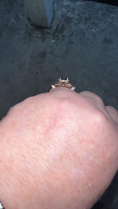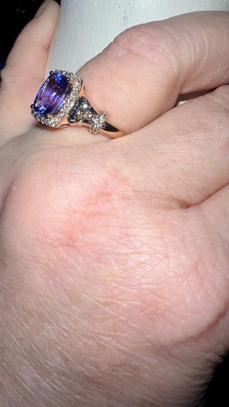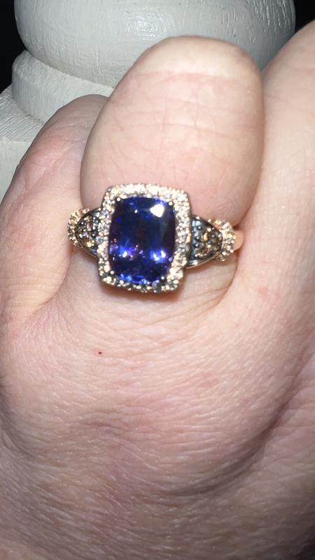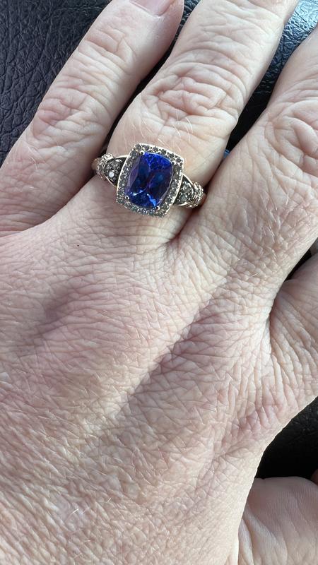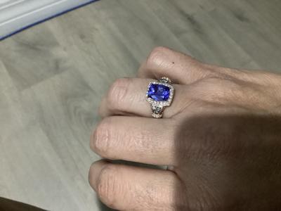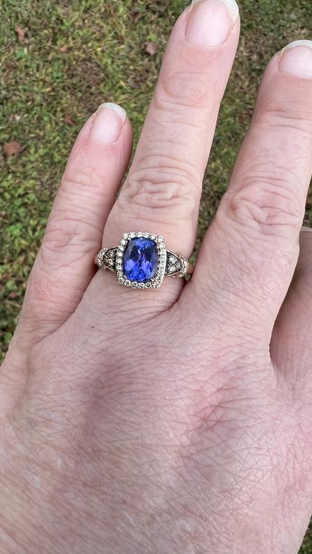 Absolutely gorgeous ring! The picture doesn’t do it justice. It is beautiful! I have 2 other tanzanite rings and this one is now my favorite. Very rich blue stone with purple hues. The Le vian setting really adds to the beauty.