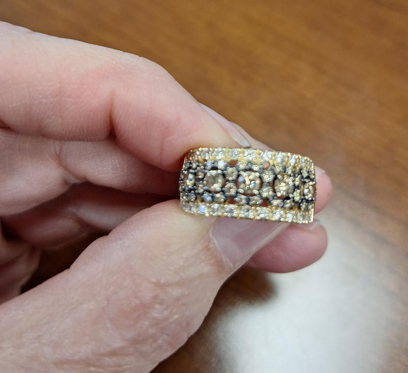 This ring is absolutely stunning. The photo doesn’t even do it justice. I’ve never entertain the thought of chocolate diamonds until I saw the ad for this ring. It is so elegant and beautiful.