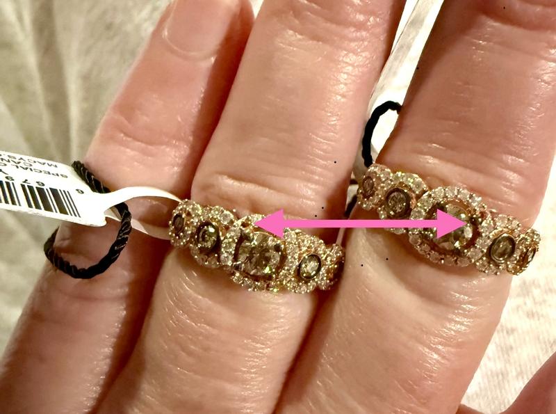 Ring came with accent diamond missing. Was super disappointed as I have been wanting a LeVian Choc diamond for some time. So I ordered the same ring again thinking that I got a faulty ring, the second ring also came with a missing accent diamond. I will be returning both. I also reached out to Le Vian directly to let them know that about the rings missing the diamonds on receiving them.