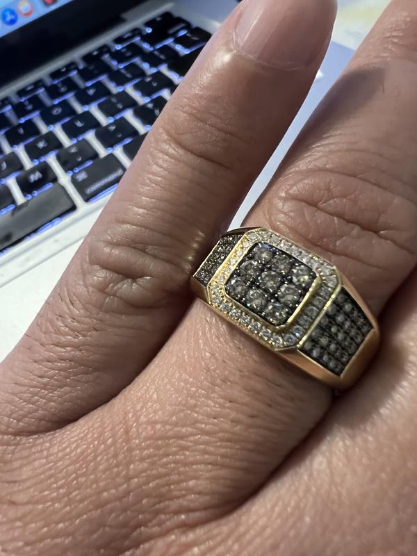 If you're seeking a piece of jewelry that exudes elegance, style, and a touch of uniqueness, the Le Vian Men's Chocolate Diamond ring is an impeccable choice. It's a true work of art that not only captures attention but also captures the essence of the modern man's desire for sophistication and individuality. The ring appears smaller compared to the photo, but it fits flawlessly, and the 86 diamonds reflect brilliantly. As a man who values good jewelry, I can say with certainty that the Le Vian Men's Chocolate Diamond ring is more than just a fashion statement - it's a symbol of refined taste and sophistication.