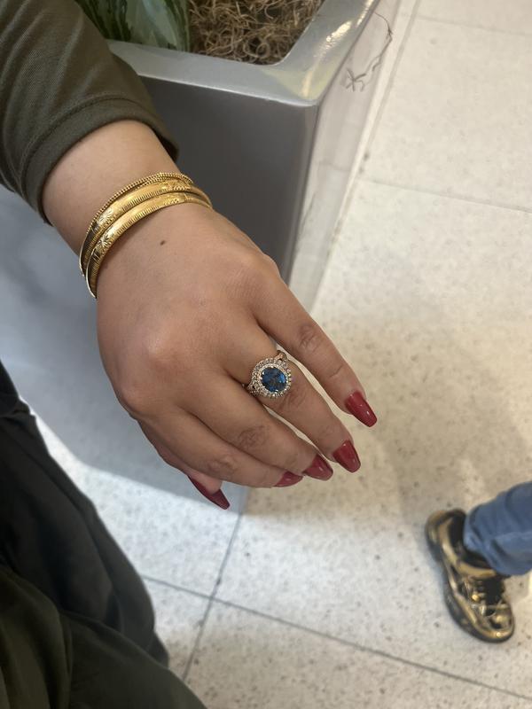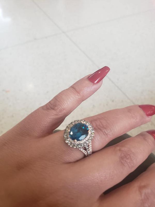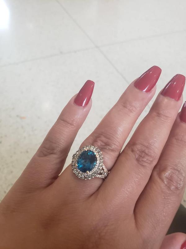 This ring is absolutely gorgeous! It sparkles so much, the topaz is the prettiest color blue. It looks rich. A fantastic price for the high quality. You won't be disappointed.