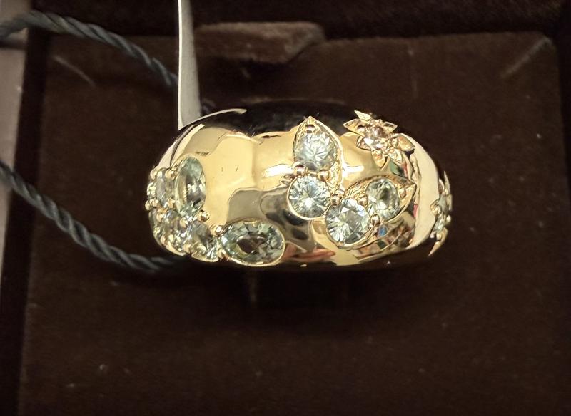 Well made beautifully designed ring with a lot of 14 carat yellow gold. The Montana Sapphires add a level of uniqueness to the design. But the sapphires in the ring that I received are muted, pale colors mostly light green and greyish. I wish I had been able to pick it out in person before purchasing. Nevertheless, the unique origin and elegant design make this piece distinctive enough to keep it.