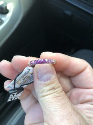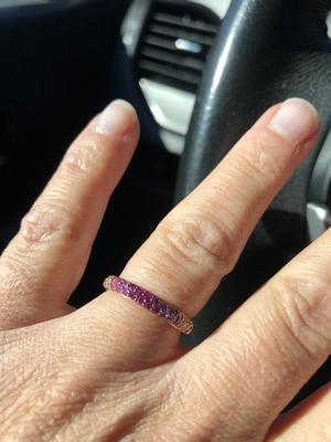 Pretty ring, but there is very little difference in the color of the stones…the pink sapphires are about the same color as the rubies. Really nice stackable ring. I would recommend, but only if you get a really good sale price. It is a very small ring, but very pretty.