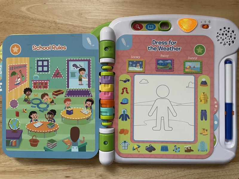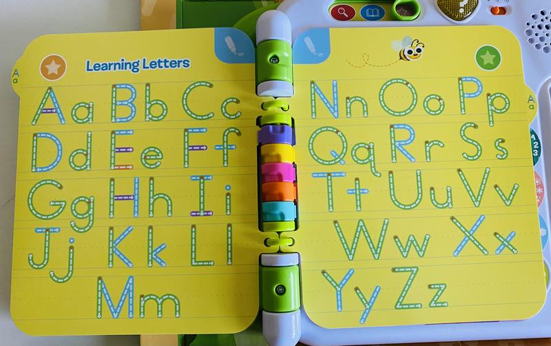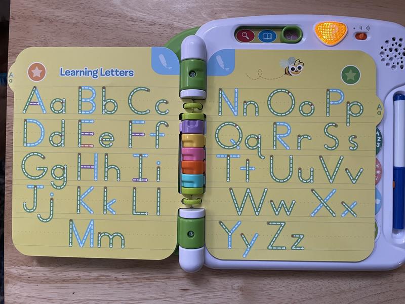Nice little book for a toddler practicing tracing. Voice activated button doesn't always match the letter that you touch - especially when a toddler goes quickly. "Bird words" is too confusing and "Dress for weather" can be improved upon.