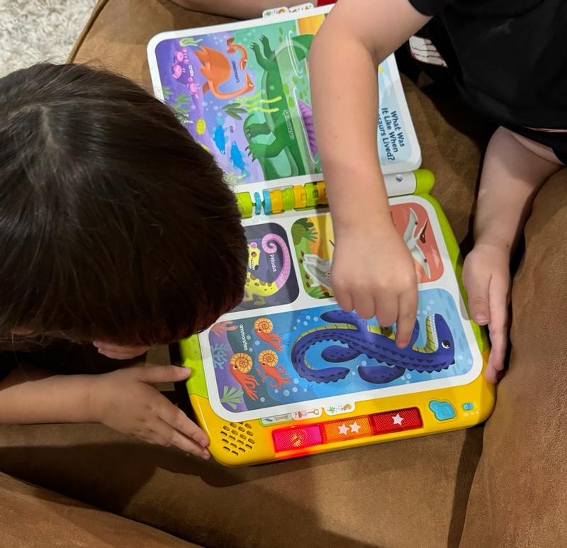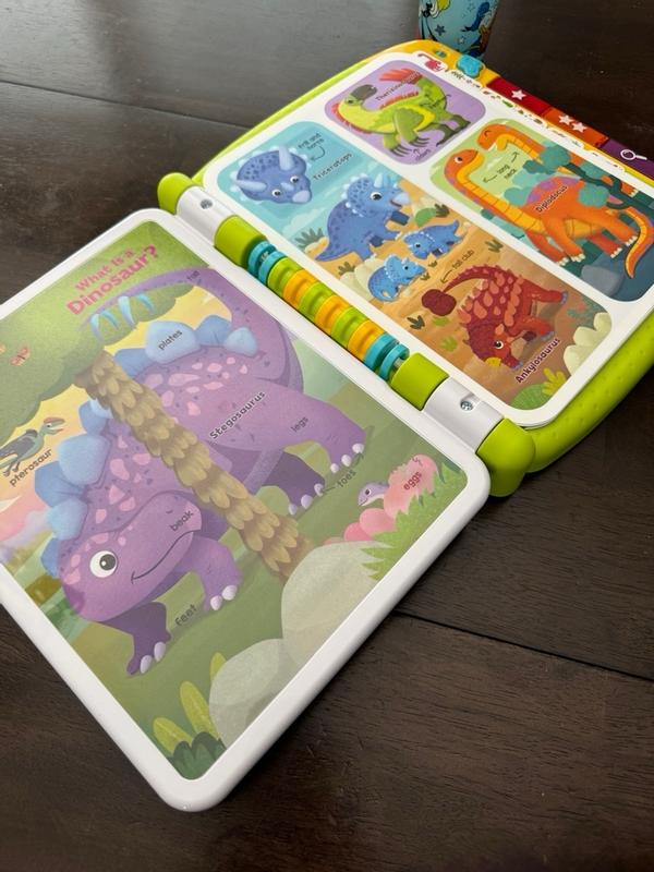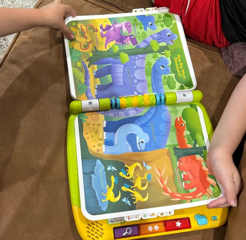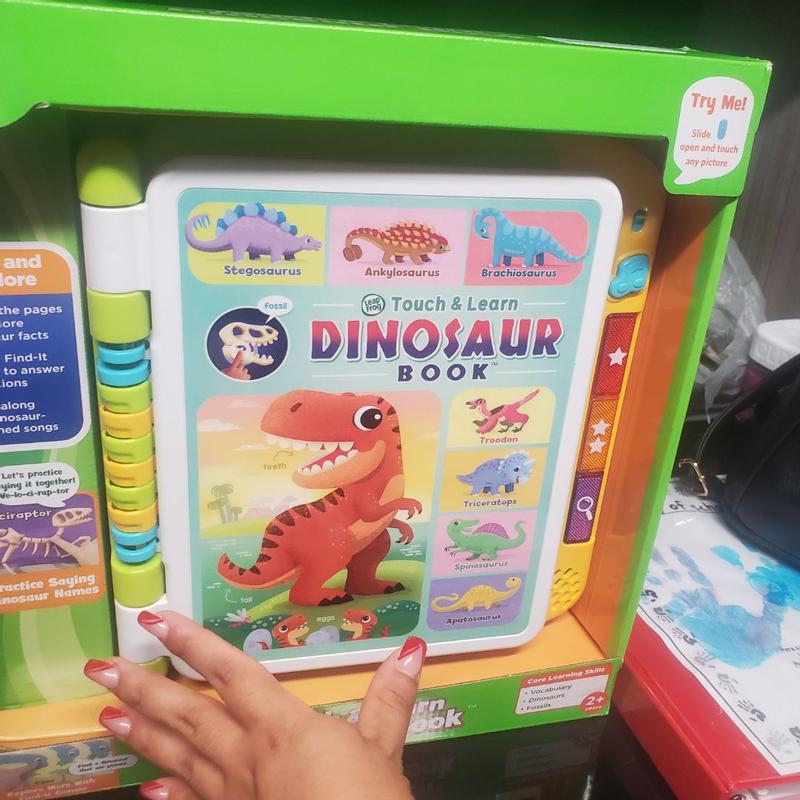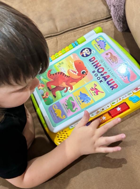 I have two daughters that are obsessed with dinosaurs right now! I love that they can interact with everything on each page of this book and it teaches them something. The battery lasts forever (we’ve used it daily for over a month now). I love how durable it is too. The pages can’t be ripped. I’d take this over a pop up book any day!