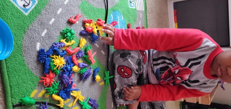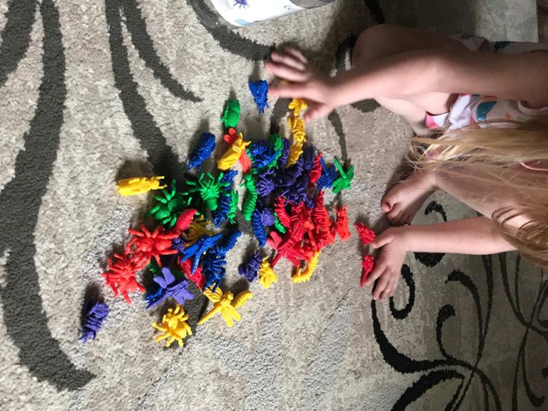 We found many uses for these little critters. The different colors and bug types make it easy to switch learning gears and practice colors and differences as well as counting.