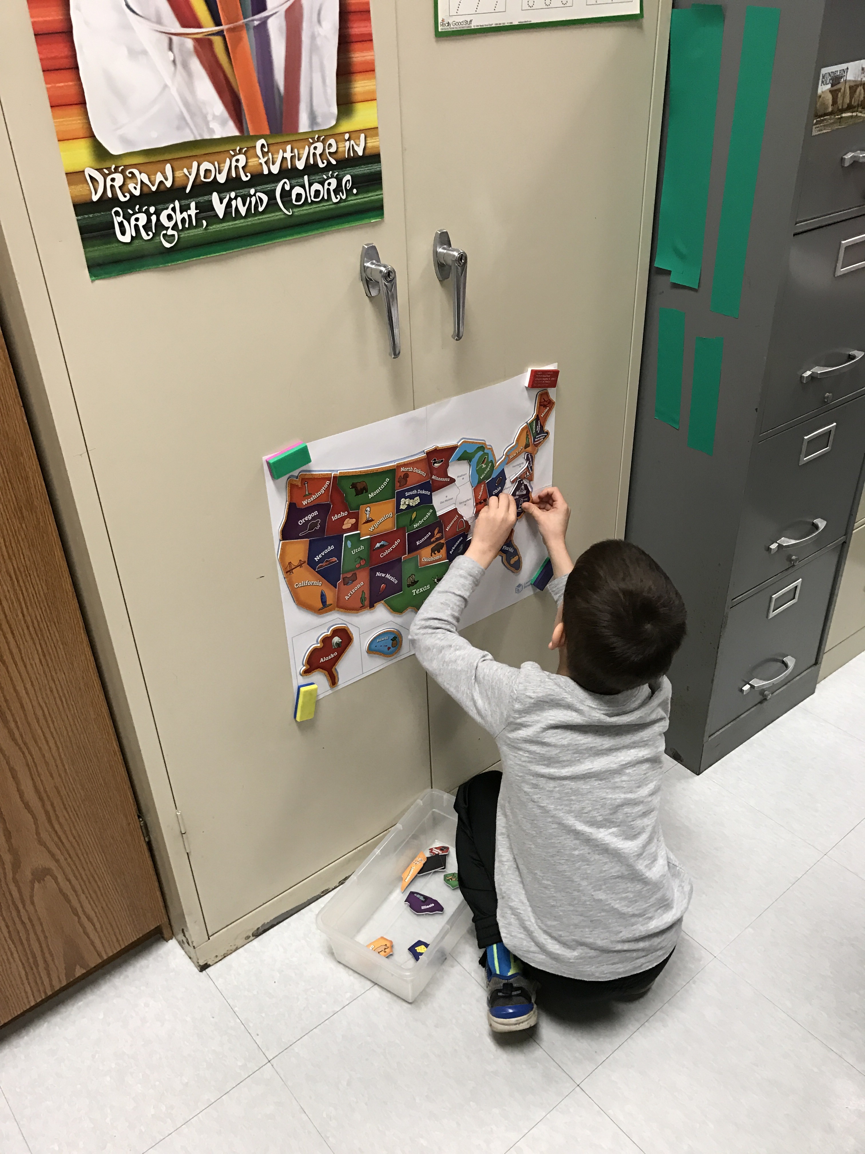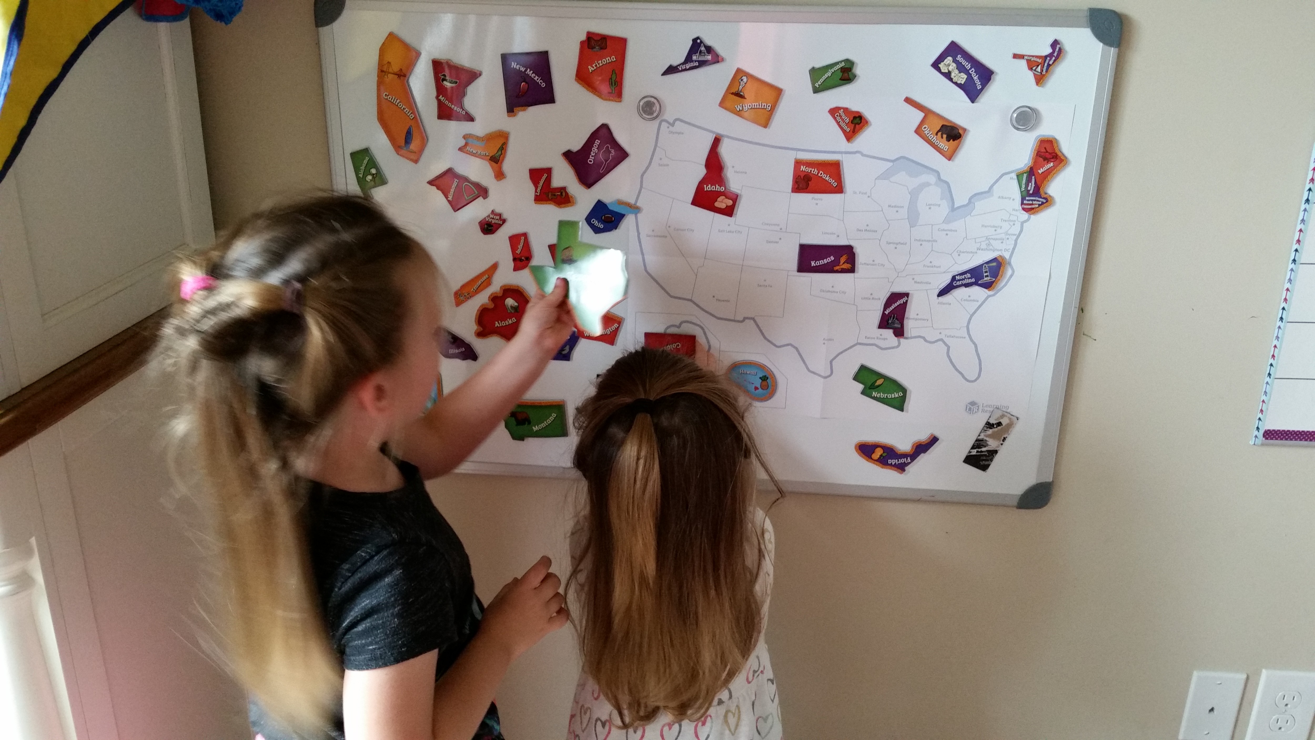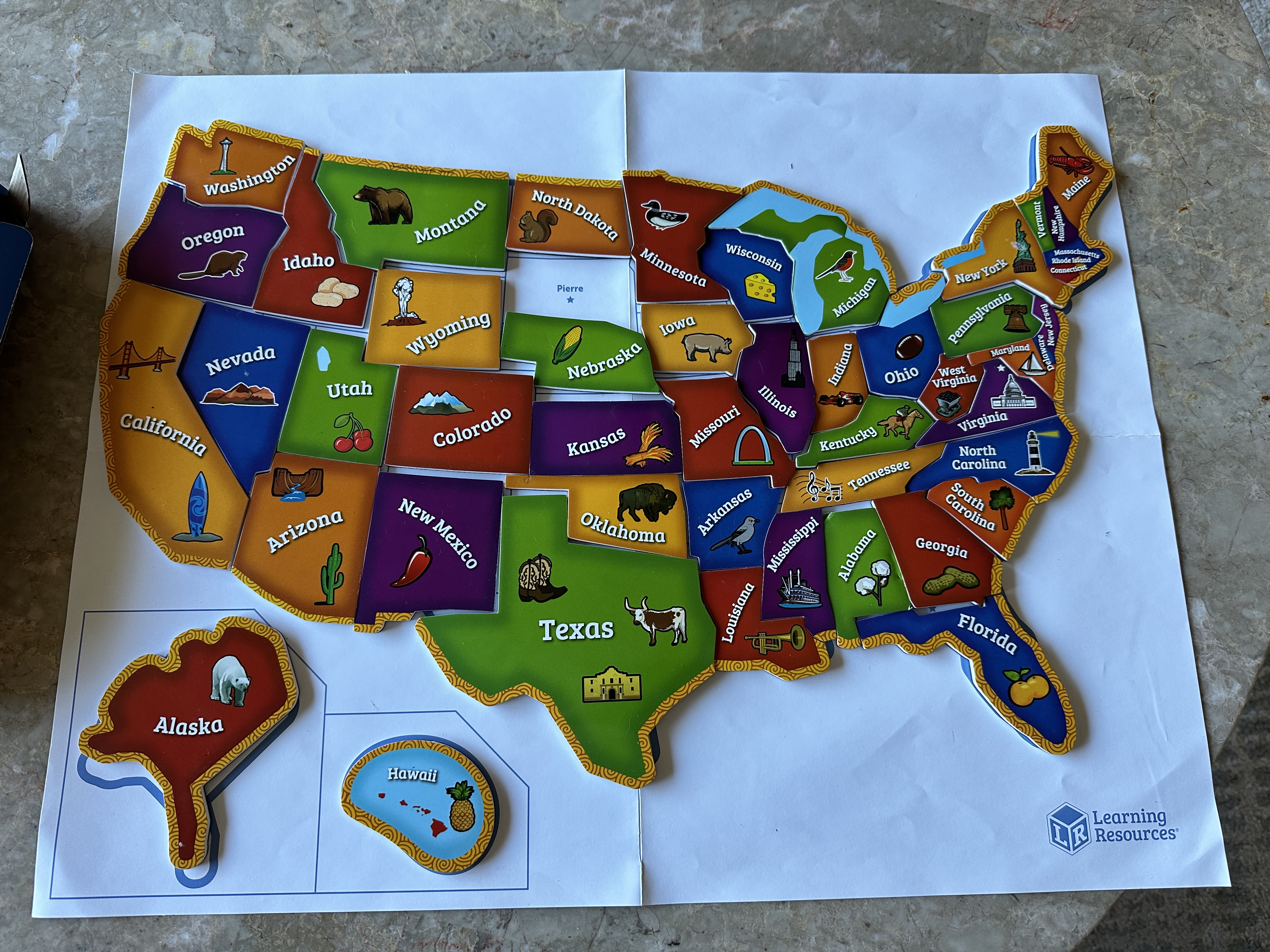 I purchased this for my 3 year old granddaughter and honestly wanted to put it together myself also! We love it as a family! It wouldn't fit in my refrigerator and it didn't work well wth the paper outline laying on table so I got creative!!! I purchased a magnetic dry erase board the same size and used modge podge (glue) and glued the outline to the board and smoothed out all the wrinkles and bubbles!! And let me tell ya we not only have a beautiful puzzle but with the bright colors looks like a work of art!! It hangs in my granddaughter's playroom and is easily removed to put together anytime!! Not stashed away in a box and forgotten about! I love that the outline is there and capitals of all the states readily to learn!! Everyone in our house loves this puzzle and great grandparents even liked it when they visited!! So great for ages 3-76!!! Learning Resources never ceases to amaze me with the great products!! I absolutely love shopping for things that help her learn all while she feels she is just playing!! Definitely worth the money and such sturdy quality!