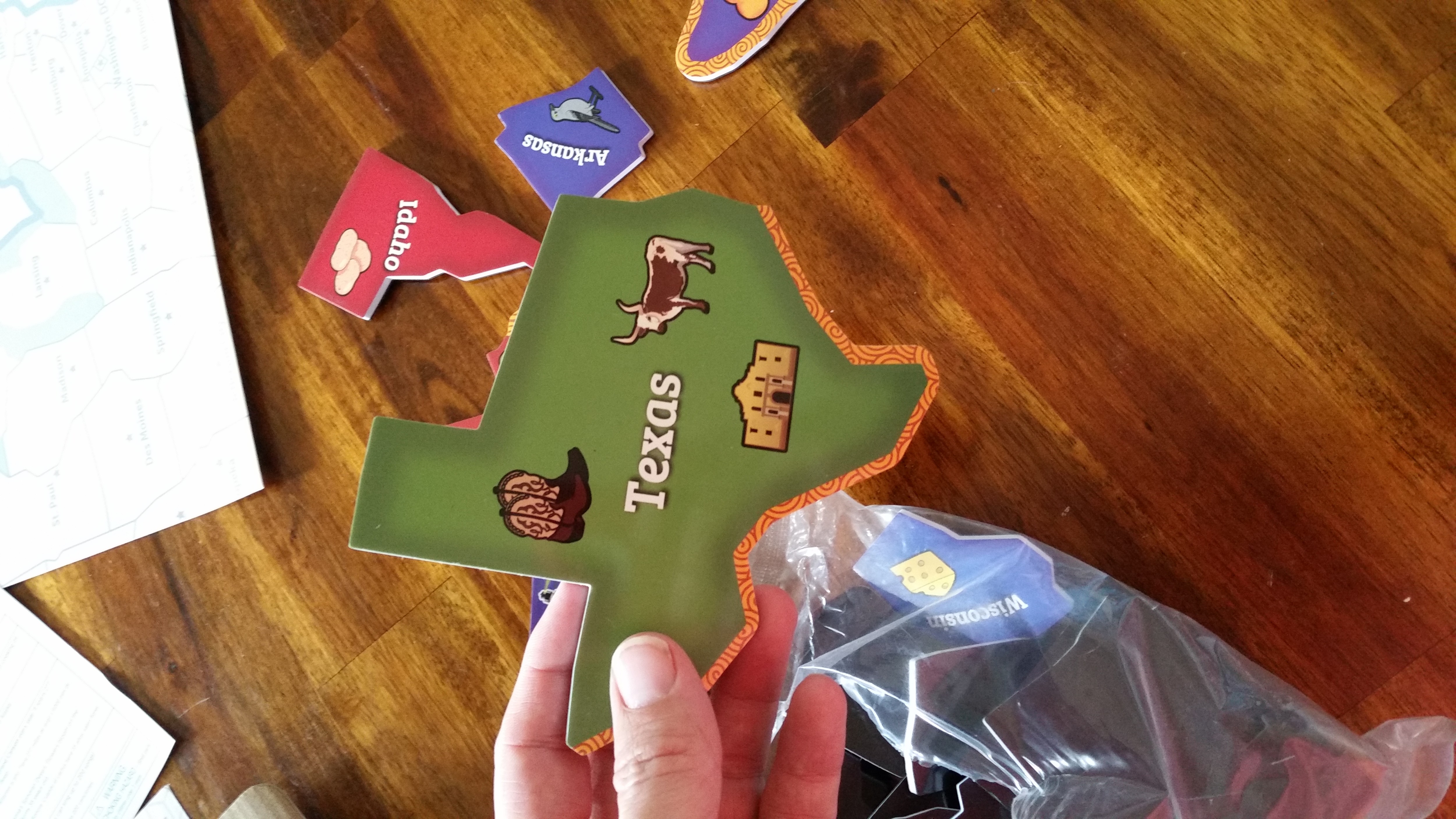 This is an awesome map! The pieces are thick foam/magnet/paper overlay, have a strong enough magnetic force to hold onto a vertical board (through cardstock paper too), and are safe enough size wise for my 2yr old to play with (not particularly worried about a choking hazard). It comes with a "puzzle piece map" of the US so kids can put the states in the correct location, which is super cool for kids learning to put puzzles together. My 4 and 2yr old LOVE putting this together and finding all the states that we have family living in. Definitely recommend for kids who are learning their states and like puzzles- 5 stars!