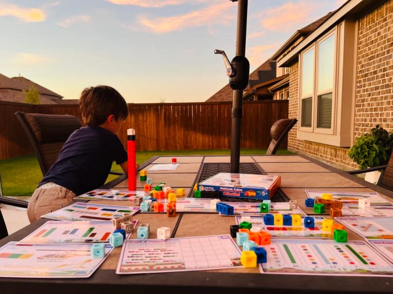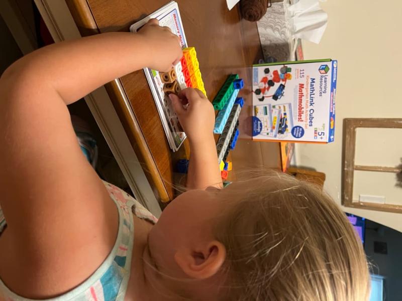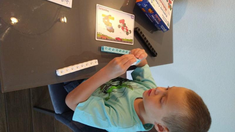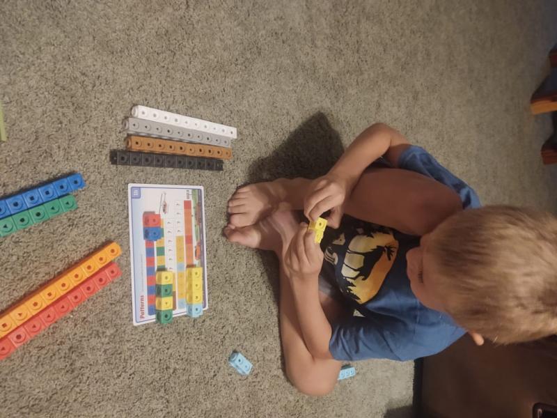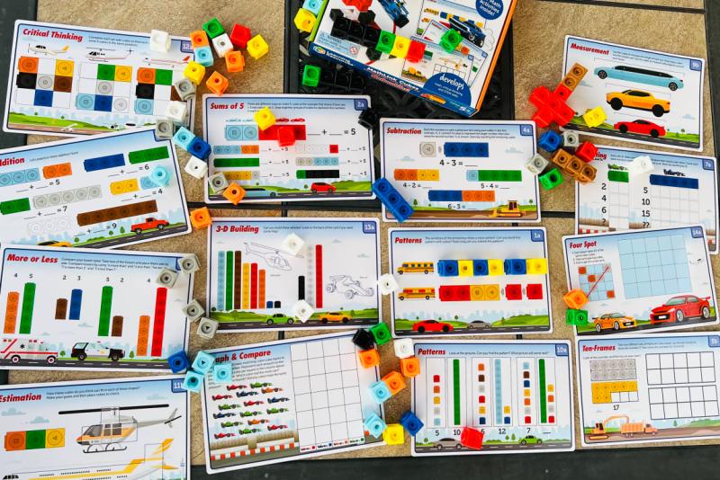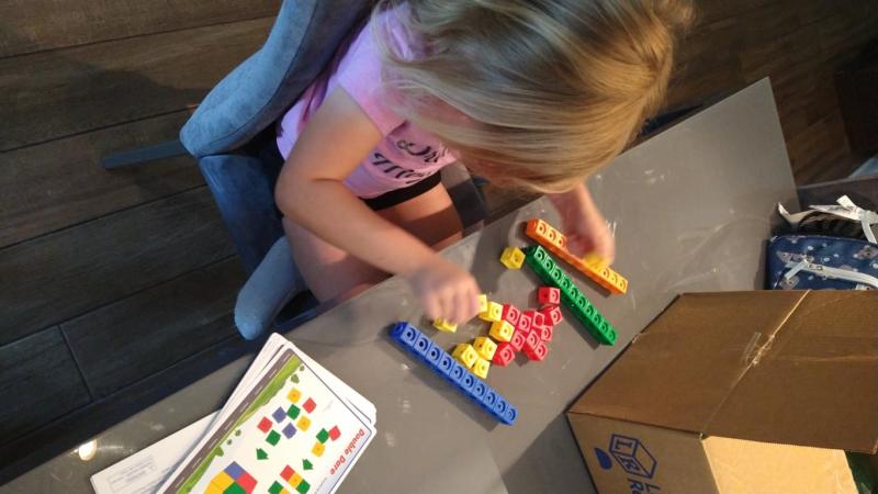 My five year old was excited to try his MathLink cubes, and I was even more excited to see that they kept his attention! He is able to work through one side of the problem cards on his own, and the second side will provide plenty of learning opportunities in the future. This set is simple yet entertaining for kids, and it is nice that it all fits back into the original box for storage