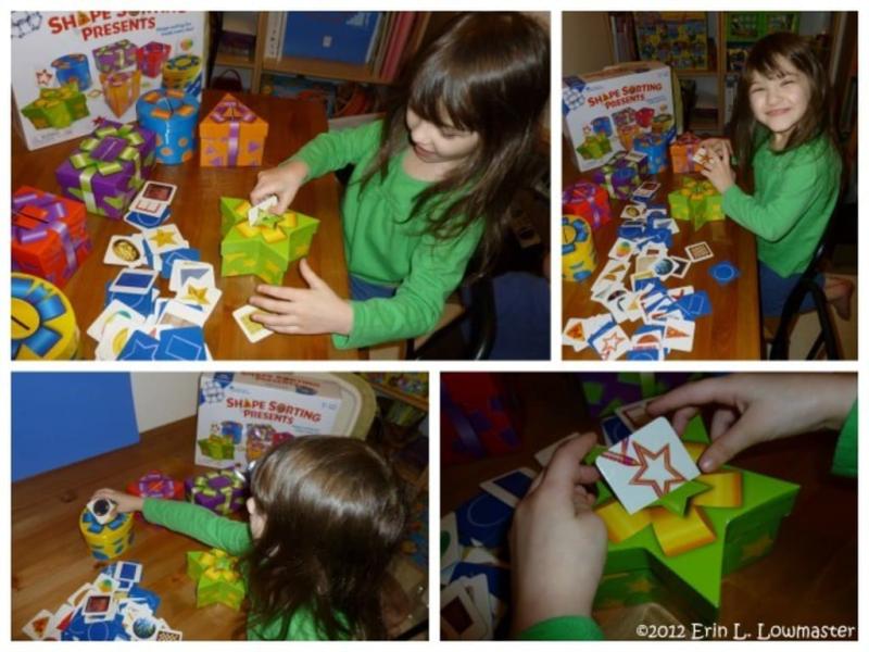 The Shape Sorting Presents was a great addition in teaching shapes to my 3 & 4 year old preschool class. They liked identifying everyday shapes that were on the cards and then finding the correct box to put them into. They wanted to do the task over and over again.