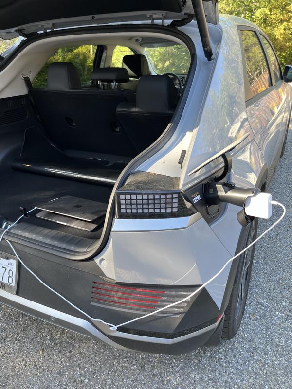I was delighted to discover that Lectron's V2L adapter works as well as Hyundai's OEM model on my Ioniq 5 Limited. Indeed, you don't even have to push a button to start it: just flip down the cover, plug in an external device, and after a couple of seconds the juice starts to flow! This will prove useful on picnics, when camping, and if my solar backup batteries run low during a power outage.
