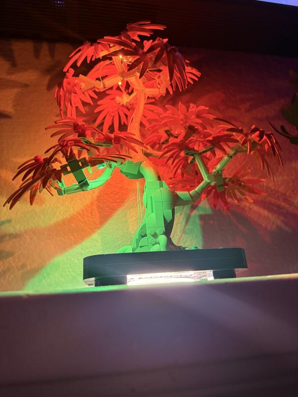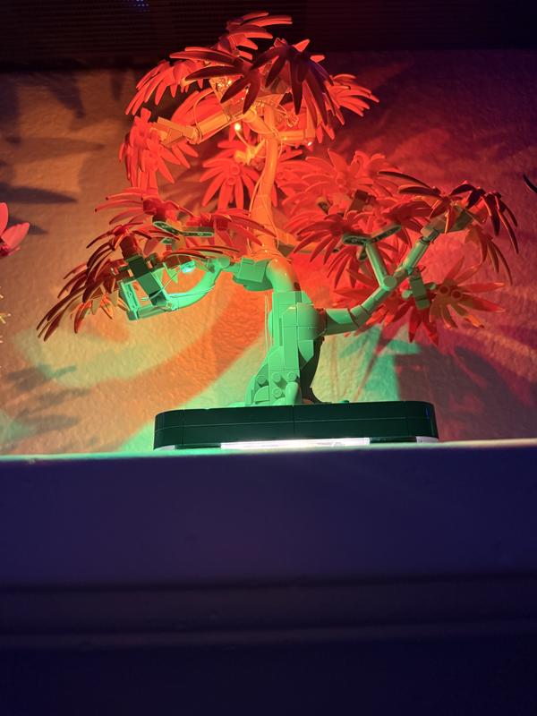 A pretty monotonous build. The planter pot is symmetrical on both sides so that was a bit lame. The tree trunk itself is neat to build, but the branches are all designed the same; there are 5 branches in all, and each branch has 2 main leaf branches and 1 cover leaf branch. The 2 main leaf branches are mirrors of each other, as are all the cover leaf branches, so when building the branches, you're building 10 of the same thing over and over again for the main leaf branches, and 5 of the cover branches the same. It was a bit boring to say the least, and I was looking forward to being done. Another disappointing aspect is that the main branches of the tree can't be moved and the design was meant to be viewed from the front. So if you're looking at it from the front head-on, it looks good, but looking at it at other angles and the tree looks disproportionate or looks like branches are missing. Being able to move the branches up or down or side to side would have been a great featrue and one that I don't think wouldn't have been too hard to make instead of fixed branches. Lastly, the pieces that hold the colored leaves onto the tree are gray in color. This doesn't make any sense, as the tree trunk and branches are a light brown or tan color. It makes no sense that these pieces would be gray. It's almost like not making them the same color was an oversight and an obvious mistake. The finished tree itself has great colors when viewed from a few steps back and it helps that I can't kill it, as I've already killed 2 real bonsai trees I've tried to grow. A cool enough finished product but could have been a lot better.