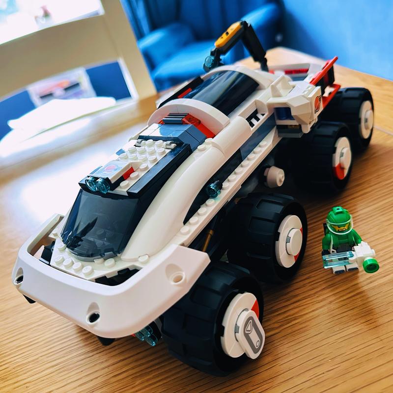 I found this on sale and had to get it. It was a great score. The build is solid and there are some fun moving features. Design-wise, the truck fits well with the aesthetics of the other vehicles in this Space series; low and sleek in profile. This set has the best robot companion and an airlock pod to take advantage of the theme’s modular play. Love it!