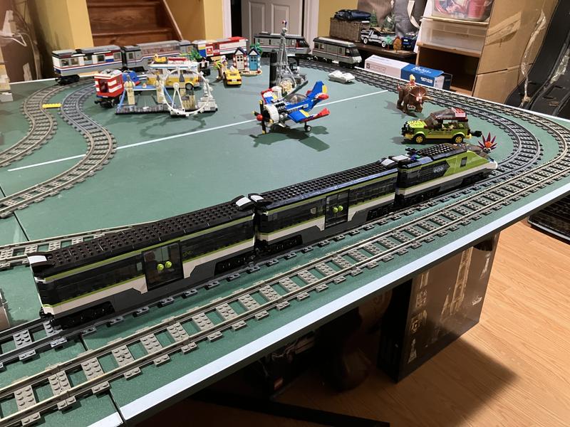 This train set is the best passenger train in recent years, mainly because it uses bricks to build the train and avoids a single-piece front end. The bricks are more versatile for reuse in different models. So good that I bought 4 of this set. The set is ripe for adding another as the other end of the train, making 6 cars, but that is more difficult to operate because the second motor would be the other way round so it would need to run in reverse at the same time. Using the other port on the second hub, one could press both buttons on the handset together, having rotated the dial 180 degrees (great feature), but what we really want is the ability to run two motors from one port or to run two motors in opposite directions from one command with the handset, without using a phone. That was easier with the previous Power Functions system. Please make the electrics more versatile, perhaps add a 2-port lead with reverse option switch for one of the ports, so we can drive "simple" motors like that. The lead could look like a train motor as its ID (pins 3-6) and just reverse the motor connections on pins 1&2. Without that versatility, people turn to 3rd-party products and you lose market share. The same goes for needing a LiPo battery for the hub. Power Functions had the 8878 LiPo battery but Powered-Up is back to unsustainable cells. So a great train set but an electric system that needs improving.