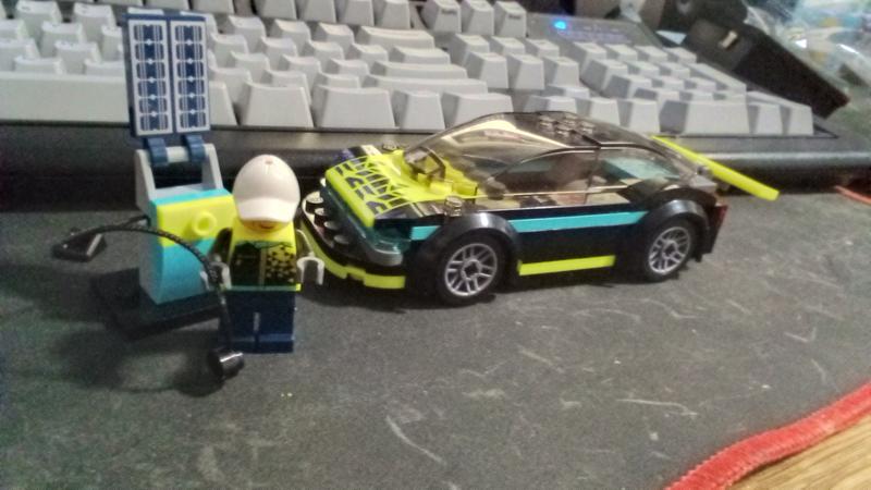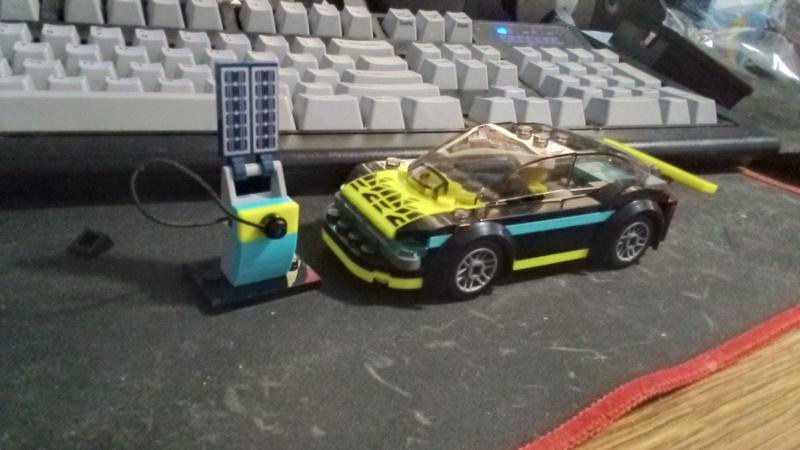 I liked the build of this set. You get some really cool neon colors you end up with a cool car and a minifigure! It also has a little charging station. I like that Lego is forward thinking about our environment. This is a cool set!