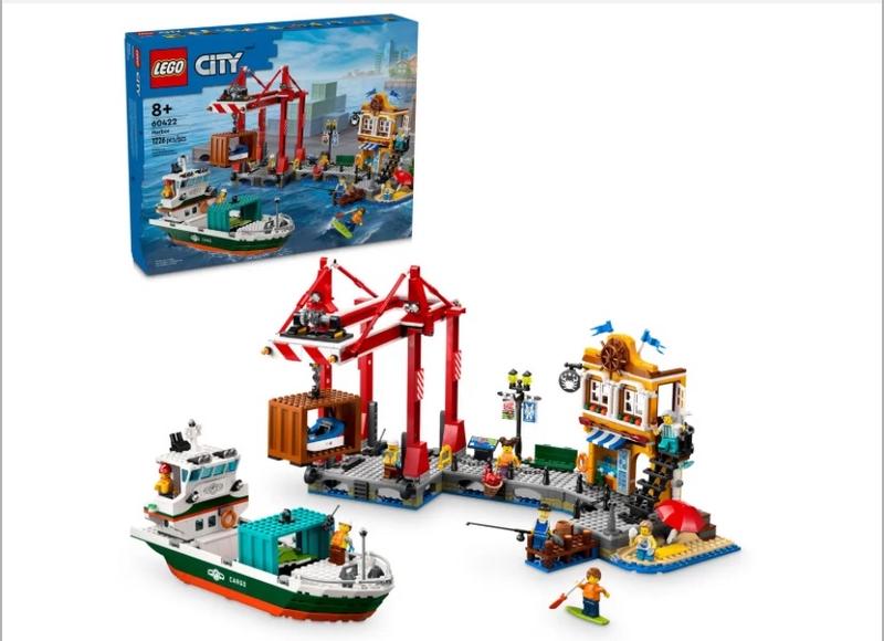 City Seaside Harbor with Cargo Ship Toy Building Set 60422, 1226 Pieces