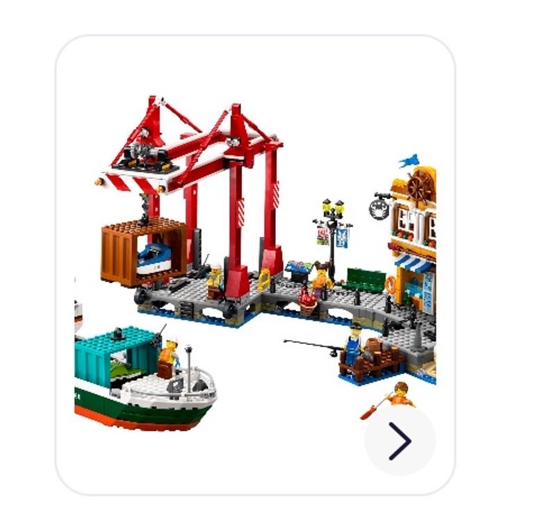 This set first caught my eye on the Lego website, then I saw it built up in store and knew I had to get it! I have to say, I've been building Lego for around 45 years now and this has been one of the most enjoyable sets I've built. I think it was the variety of the models I enjoyed most; my first ship was great and gave me a good sized model to begin with, there was a slight technical element to the crane which was fun, and the look and design of the rest of the set really appealed to me as well. I am now trying to work out if I can have a branch line running from my Christmas village to this set, and create a proper port area!