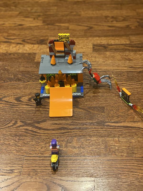 This Lego set came with easy to follow instructions n a few extra pieces in case of loss. My 5yo was able to build the set with minimal help sorting the pieces. After it was built, it provided lots of instant fun as he built n crashed each time. The wheels on the bike were really good as it spun very well with minimal effort. It went up ramps easily, glided across floor n crashed buildings on impact. So much fun for the entire family!!