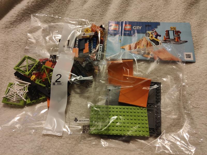 When my son opened the box, bag 1 was missing, and instead, there were 2 of the bags with ramps and plates. Because of this, my son was unable to finish the set and was left with 2 extra ramps, 4 extra road plates, and an extra green plate. This looks like a very good set, but it was very disappointing to find that the pullback motorcycle was absent.