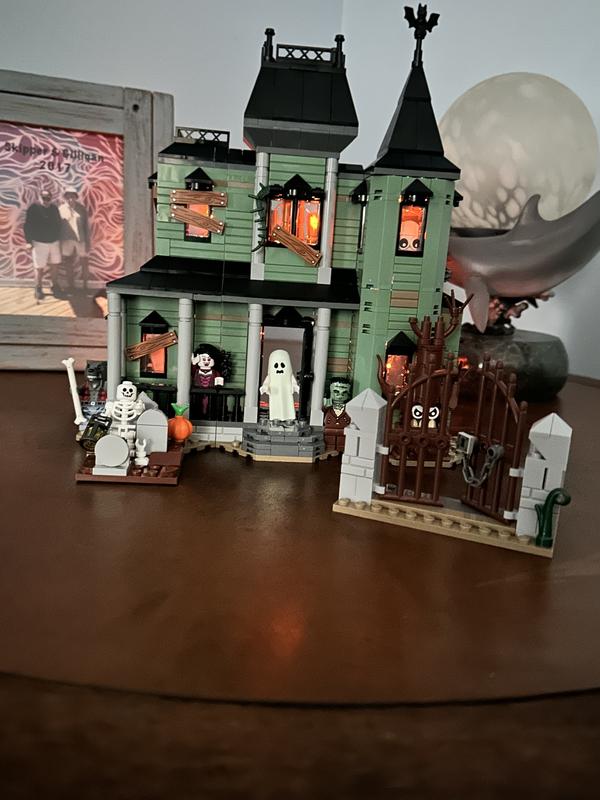 This kit was fun to put together. I love the glow in the dark ghost. I added orange fairy lights to the house so at night the windows glow. I am hooked on Legos.