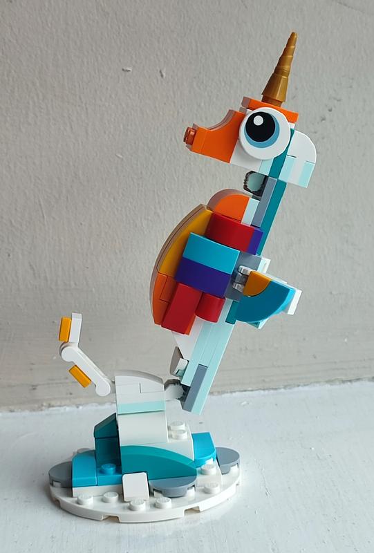 I am a big fan of seahorses. I love this build except for the one horn on top... I haven't seen any seahorses like that, but some do have ridges and little spikes. Thankfully I was given two pieces of the top of the horn so I was able to make it into two little spikes instead of the one horn.
