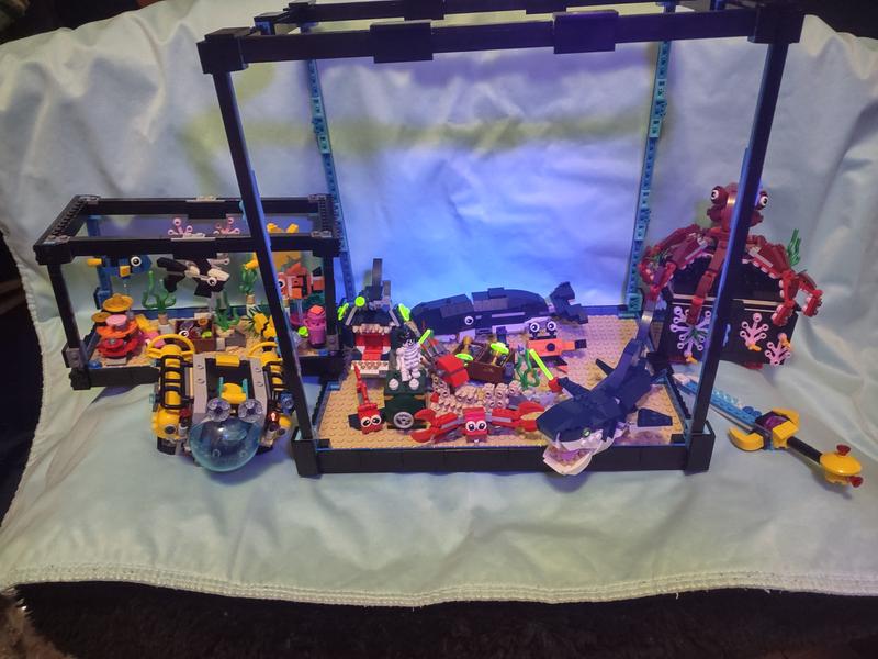I got this set because I have the lighthouse set and I wanted to add a giant octopus to it for halloween. (Works perfectly) I wasn’t as interested in the submarine initially but enjoyed building it. Brought back nostalgia for builds in the 90s. My one wish though is that bag 1 and bag 2 were split between all 3 builds. The lobster and stingray builds use both bags interchangeably