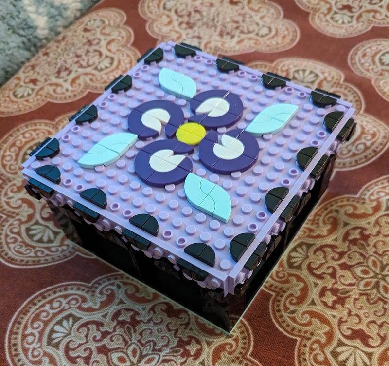 Bought this box to hold my extra Lego pieces. Love that I can change the top patterns whenever the mood strikes