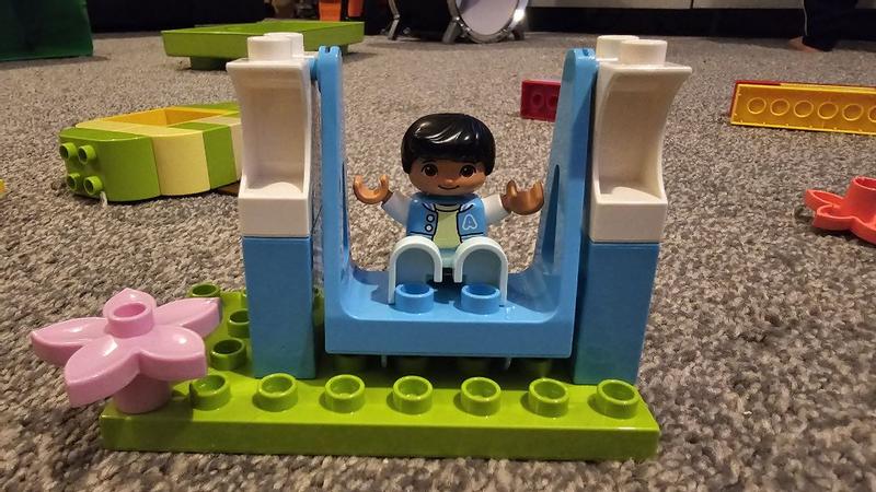 A fantastic toy to allow little ones to learn through play and use their imagination. The handy booklet included shows a variety of set ups that can be created using the blocks and accessories or to make up your own creations. The swings, slides, little characters and animals included in the deluxe brick set has everything needed to keep little imaginations alive. Lego duplo has been enjoyed for many hours by the big kids as well as the little ones. A handy feature is being able to keep all the pieces in the large container, bonus points for it looking like a lego brick, this is handy for storing it away neat after play has finished and keep all the pieces together or for taking around the house from upstairs to downstairs and to grandparents a few times. The bricks are a good size for small handles and no choking hazards and I love this is a game that can be done towards the evening when we encourage quiet time with low stimulation, no noises, bright lights or screens required.