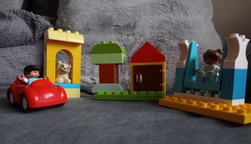 What a great and fun box of Lego duplo. I think it’s great it comes in a box to store all the pieces too. The blocs themself are a great size for smaller hands so they can be held and built easily. I love how creative you can be too and this box has so many blocks in to build multiple things. I can tell these blocks are durable and will last a very long time.