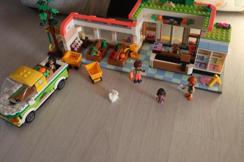 Our three youngest kids, two boys 6 and 4 years old and their older sister 9 years old all got very excited when they got their hands on the grocery store. When it comes to Lego Friends, it seemed that this one was a true hit for all genders, when other Friends sets that we have, have been more liked by the sister. All of the kids build a lot of legos, so this was quite easy for them, but it didn’t seem to bother them. Also what was surprising, was that they liked building it together, because of all the small objects and details that they could share. Some small details were a source of huge excitement, such as the pink spillage from the pink bottle. Especially the 4 year old was very stoked about it. Vending machine / fridge elements were interesting, but definitely the sliding doors of the shop as well as the checkout conveyor belt were a massive hit. So all in all this is a great choice when looking for a lego to please siblings of different genders, and it is also quite flexible when it comes to age as there are many details to play with, so then the more simple building process doesn’t matter. The colours are also great, because those are quite gender neutral.