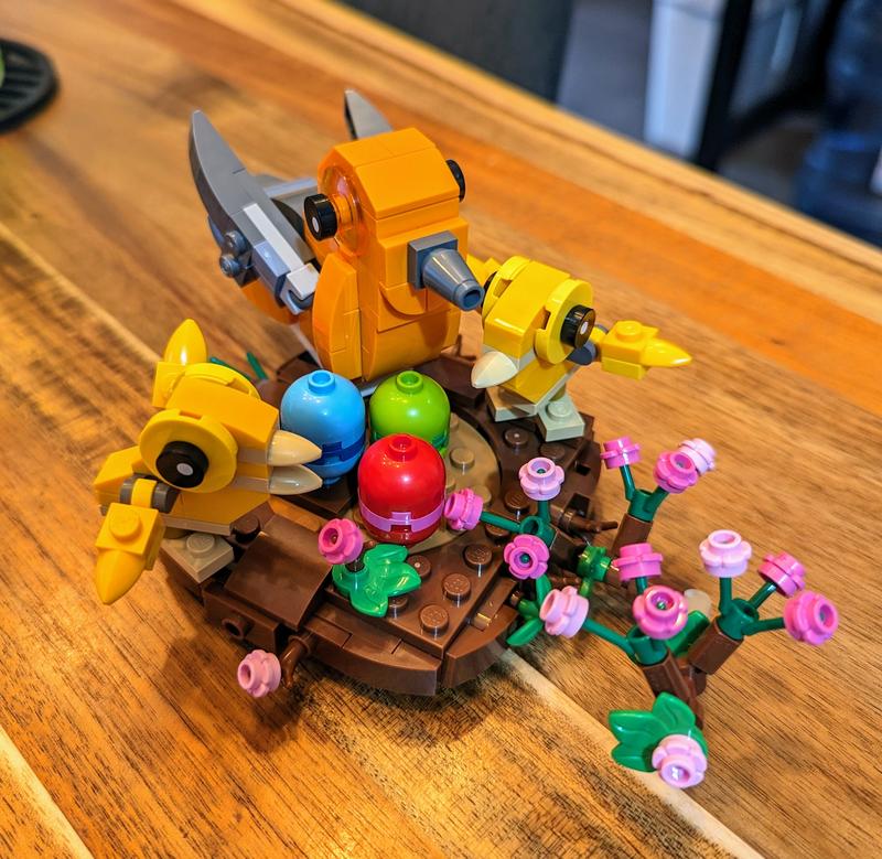 This was a cute and colorful build. The posable wings and and rotable birds are neat