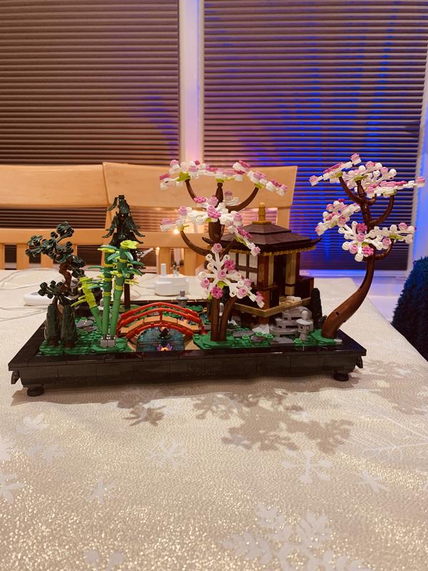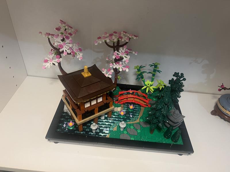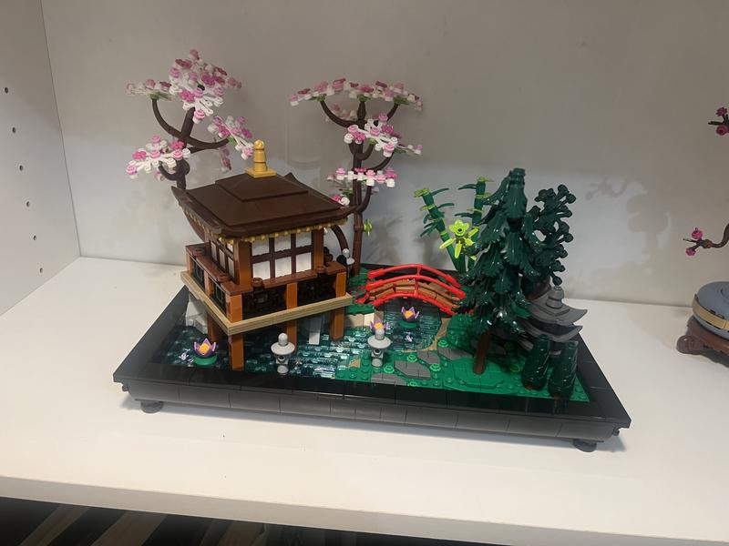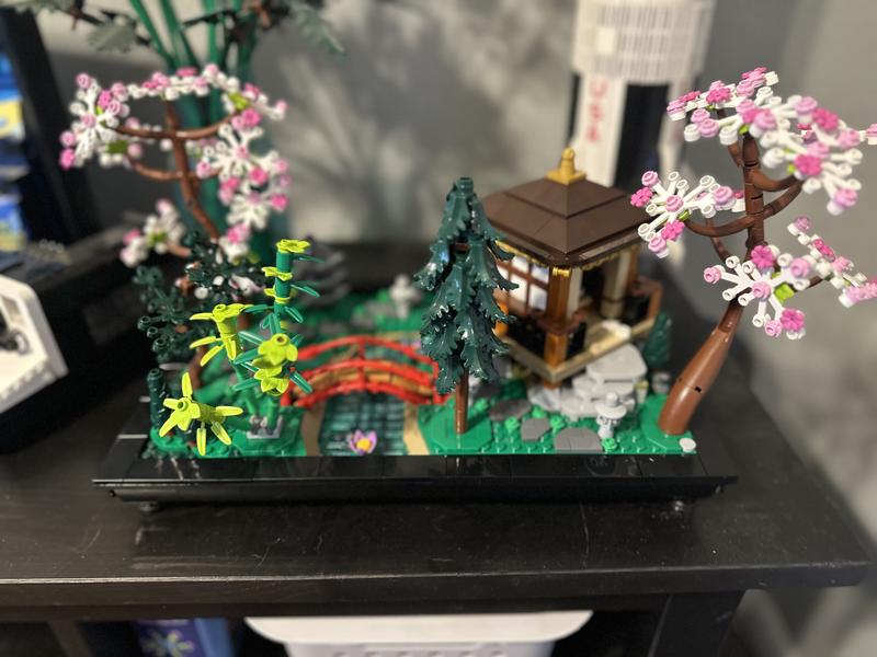 This is an extremely well designed and beautiful set. I really like how the various trees can be arranged to go in different holes, how the translucent tiles overlap different colors of ground, and the small details like the green tea in the tea set and koi on some of the fish tiles. All of this is great. The manual is a little hard to read with various colors of gray on a gray background, I would prefer things to be a bit higher contrast, but it's workable. This was a really fun build and looks great on display.