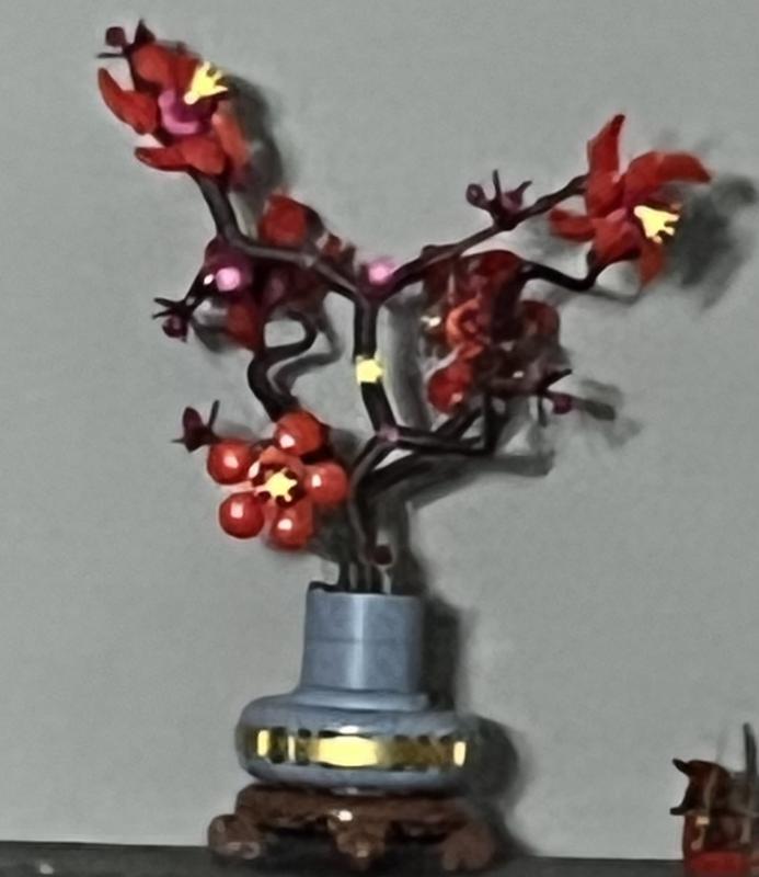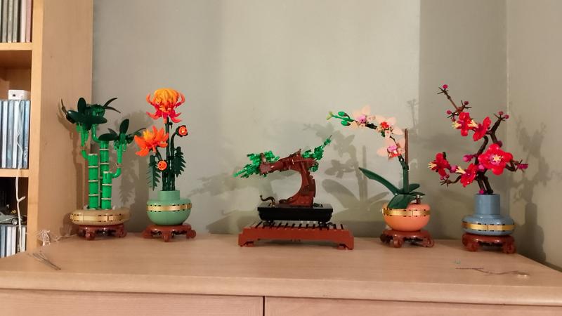 I enjoyed building this set a lot as it has variety in the flowers and the different pieces used to construct the plum blossoms. I don’t quite like the loose pieces to mimic soil as they can be lost easily.
