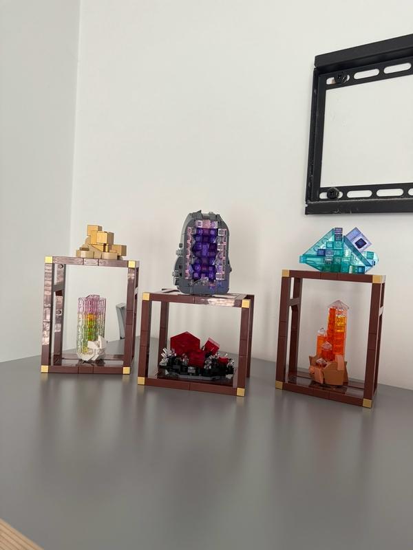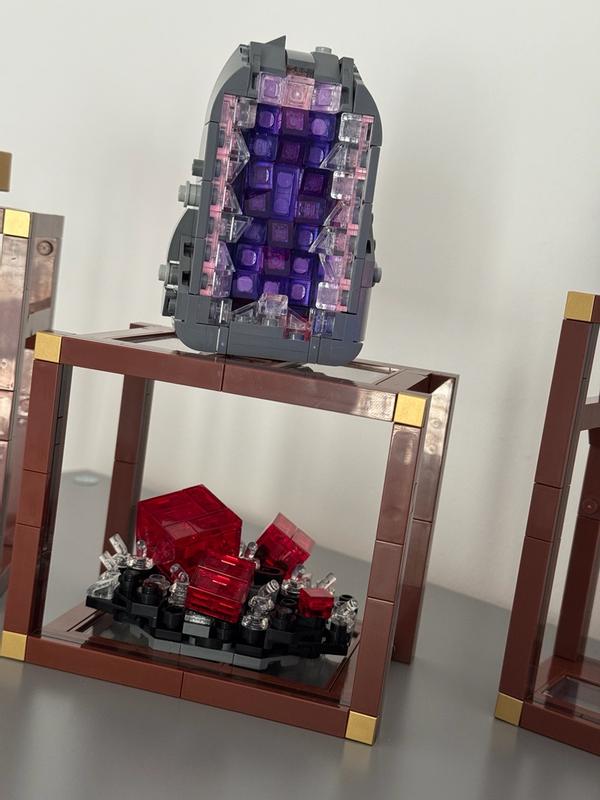 Building the LEGO® Mineral Collection was such a joy! This 880-piece set lets you recreate six vibrant minerals — golden pyrite, purple amethyst, blue fluorite, watermelon tourmaline, reddish-pink rhodochrosite, and tangerine quartz — using clever techniques and transparent bricks that capture their colors beautifully. The set includes three buildable display shelves that you can arrange and customize, making it a stunning piece of living room decor. My son also got involved, and it was a fun, shared creative experience. A perfect gift for rock collectors, nature lovers, and LEGO fans, combining art, creativity, and displayable models all in one.